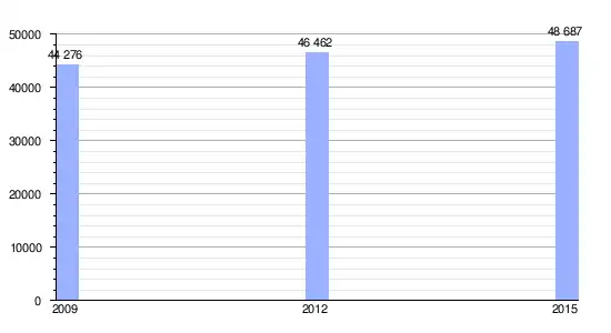 Gráfica de evolución demográfica de Cavaillon entre 2009 y 2015 |