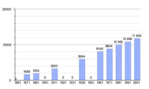 Gráfica de evolución demográfica de Cavallino-Treporti entre 1861 y 2001 |