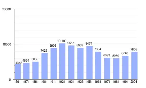 Gráfica de evolución demográfica de Cavriglia entre 1861 y 2001 |