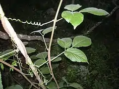 Es una planta trepadora leñosa, suavemente pubescente; con zarcillos sobre todo de dos brazos, sin discos adhesivos. Las hojas son palmeadas compuestas; trifoliadas, con una amplia gama de ovados a elípticos, miden 4-14 cm de largo, y 10.2 cm de ancho, el ápice acuminado, la base cordada con hojuelas laterales a menudo asimétricas, los márgenes de la mayoría están crenados, ambas superficies mates y pubescentes; con pecíolo de 3-10 cm de largo. Las inflorescencias con pedúnculos ligeramente más cortos que las hojas. Los pétalos de 2.5-3 mm de largo, son color verde. El fruto es globoso de 8.10 mm de diámetro.