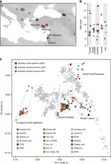 Se ha descubierto que las poblaciones del neolítico anatolio derivan una porción significativa de su ascendencia de los AHG, lo que sugiere que la agricultura fue adoptada in situ por estos cazadores-recolectores y no difundida démicamente en la región.