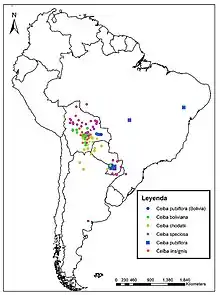 Ceiba es un género con unas 21 especies aceptadas, del centenar descrito,[1] perteneciente a la familia Malvaceae. Las nuevas clasificaciones incluyen las especies del género Chorisia dentro de este.[2]
