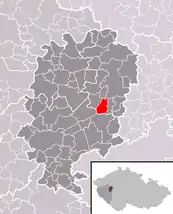 Se encuentra ubicada al noreste de la región, en la cuenca hidrográfica del río Berounka —un afluente izquierdo del río Moldava que, a su vez, lo es del Elba—, y cerca de la frontera con la región de Bohemia Central.[1]