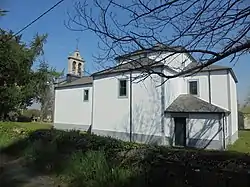 La iglesia parroquial es un templo moderno con amplio atrio, cementerio y contorno de grandes robles. De cruz la latina, cubierta de pizarra y muros de una piedra revocados de cemento. Nave esbelta, con una puerta lateral Sur, a dos aguas, puerta principal con lintel semiarqueado y ventana con lintel semicircular, espadaña de dos vanos. Piso de cemento, coro de madera sobre los pies, pila bautismal, a la izquierda, con dibujos geométricos y pie cuadrado. Crucero con cúpula sobre cuatro arcos de medio punto, cubierta a cuatro aguas, más elevada que la nave, e iluminada a través de cuatro óculos laterales. Tiene un retablo mayor, moderno, sin valor. También hay un retablo de la capilla lateral derecha, neogótico con la Inmaculada y San Roque, el Niño, un perro y unas llaves a los pies (s. XVII). La cruz parroquial es de plata repujada (s. XVIII).