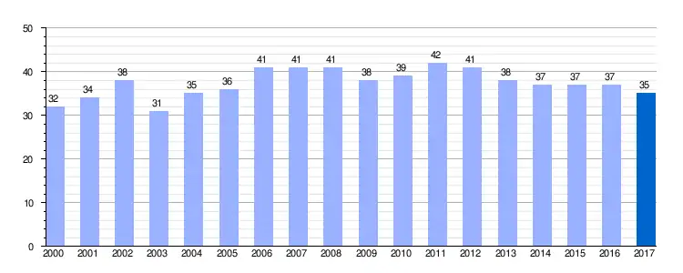 Gráfica de evolución demográfica de Celada de la Torre entre 2000 y 2017 |
