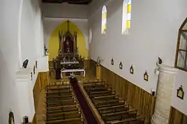 - Renacentista. Siglo XVII. Tuvo como veedor[5] de las obras a Juan de Naveda[6] Adscrita a la parroquia de Valle de Ubierna en el Arciprestazgo de Ubierna Úrbel.[7]Situada en un lateral de la Plaza Mayor, se trata de un sólido edificio de piedra con torre fortaleza, levantado sobre una sola nave rectangular. La portada presenta arco de medio punto y frontón roto del siglo XVIII. El interior ha sufrido profundas modificaciones, aunque tanto la sacristía como las capillas laterales conservan su aspecto primitivo. En una de ellas se encuentra un interesante retablo de madera policromada. La iglesia tiene una única nave de planta rectangular con artesonado de madera (reconstruido siguiendo el modelo del original medieval).