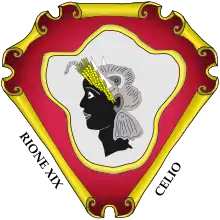 Celio es el decimonoveno rione de Roma, indicado como R. XIX. El escudo del rione representa el perfil de un africano con un tocado de cabeza de elefante y espigas de oro sobre fondo de plata, que se debe a la memoria histórica de los legionarios africanos, dirigidos por el cónsul Escipión el Africano, que estaban presentes en la colina del Celio. A esto se añade también el hallazgo arqueológico en el territorio del rione de un busto de mármol que representa a un «africano» que se conserva en los Museos Capitolinos de Roma. La Via Capo d'Africa recuerda la presencia de Escipión el Africano en la colina del Celio. La Tumba de los Escipiones también se sitúa en el rione Celio, entre la Vía Latina y la Vía Apia, antes de la Porta San Sebastiano.