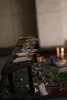 En el altar destinado al cráneo los devotos ponen velas y cigarrillos para solicitar favores, dejan cartas con peticiones al santo[8] y colocan plaquetas conmemorativas dando fe de los favores o milagros recibidos de San Bernito.