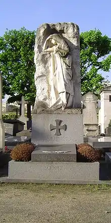 La tumba está coronada por un relieve de mármol blanco de Marius Rémondot, con fecha de 1910 y que representa una doliente.