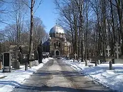 El cementerio alberga la Iglesia de la Ascensión de Cristo , la única Iglesia Ortodoxa de Letonia en Riga, donde los sermones se celebran en letón.
