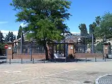 En 1884 Francisco Aurelio Álvarez Millán diseñó la portada y en 1886 diseñó dos edificios franqueándola que se usarían para la gestión del lugar.[23] En 1894 Juan José López Sáez diseñó dos casetas para guardias en la parte trasera de la portada, a ambos lados de la avenida principal.[24]