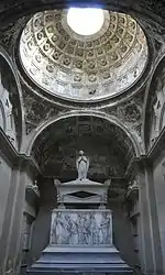 - Antonio Uriarte (1872): Túmulo de planta cuadrada realizado en piedra jaspón por el arquitecto Manuel Rivera Valentín. En el centro se dispone una elevación rectangular sobre la que se asienta un sarcófago de piedra caliza blanca. La tapa, a dos aguas, quiebra su base inferior para generar frontones triangulares en sus cuatro lados. Los laterales sustentan una decoración en relieve representando entrelazos, en las esquinas se integran finas columnillas y en los lados anterior y posterior se muestra una decoración de cruces y cálices con sagradas formas.