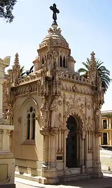 - Rito Baquero: Fue un importante bodeguero español llegado a la Provincia de Mendoza en el año 1881 como el comendador del rey Alfonso XIII. Fundó su propia bodega titulada El Baquero, en el departamento de Maipú. Falleció en 1939, su mausoleo hecho de piedra al estilo neogótico con rasgos de mudéjar y morisco, fue traído de Barcelona. Es uno de los más destacados del sector antiguo del cementerio.