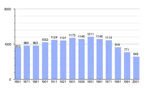 Gráfica de evolución demográfica de Cenadi entre 1861 y 2001 |