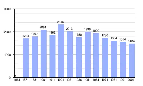 Gráfica de evolución demográfica de Cencenighe Agordino entre 1861 y 2001 |