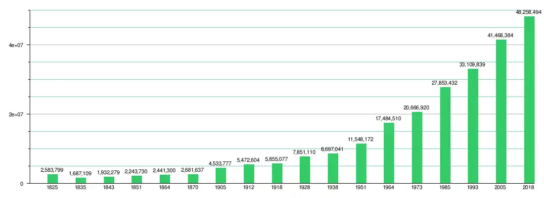 1825 | 1825 | I Censo de Población | 2 583 799 | [nota 2] | |