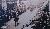 Gran procesión cívica formada por todos los elementos de la sociedad mexicana y marinos extranjeros, en la avenida San Francisco.