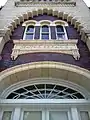 - Detalle de la fachada con el rótulo de piedra "Centro Español".