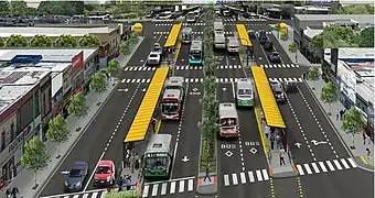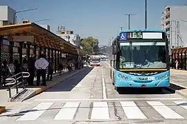 La estación posee ocho plataformas techadas similares a las del Metrobús de Buenos Aires, además de carriles exclusivos. Cada plataforma incluye carteles informativos sobre el servicio y las combinaciones posibles. Se informan las líneas de colectivos que pasan por la estación, además de un mapa detallado de las inmediaciones. Las paradas son cubiertas, poseen asientos y carteles en braille con el nombre e información de la estación.
