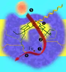 Después de que el electrón ha abandonado el fotosistema II es transferido al complejo b6f del citrocromo y después a la plastocianina, una proteína azul de cocer y transportadora de electrones. El complejo de plastocianina trae los electrones que neutralizarán el par en el fotosistema I.