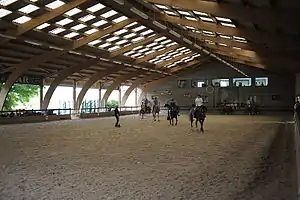 - Esta obra contiene una traducción parcial derivada de «Centre équestre» de Wikipedia en francés, publicada por sus editores bajo la Licencia de documentación libre de GNU y la Licencia Creative Commons Atribución-CompartirIgual 3.0 Unported.