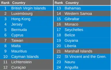 - «Offshore Financial Centers and the Five Largest Value Conduits in the World». CORPNET. 24 de julio de 2017.