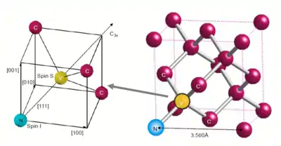 Un centro nitrógeno-vacante consiste en dos posiciones adyacentes de la red cristalina del diamante que en lugar de contener dos átomos de carbono contienen un único átomo de nitrógeno, quedando la otra posición vacante. Es uno de los numerosos defectos cristalinos conocidos en el diamante, que se observan tanto en diamantes naturales como sintéticos, y los apartan de la estructura idealizada. El centro nitrógeno-vacante más estudiado tiene una carga eléctrica de -1 y dos valores de espín: un espín nuclear que puede ser I=1 para el nitrógeno-14 o I=1/2 para el nitrógeno-15, y un espín electrónico S=1, por el mismo electrón extra que le da la carga y los radicales que quedan por los enlaces covalentes rotos. Es interesante como sistema modelo en diferentes ramas de la física cuántica, concretamente en óptica cuántica y en computación cuántica, y se han sugerido posibles aplicaciones en cifrado cuántico[1] y en computación cuántica.[2]