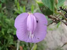 Son trepadoras; con tallos delgados.[3] Folíolos 3, ovados, elíptico-ovados o a veces angostamente oblongos o lineares, 2–7 cm de largo y 1–3 cm de ancho, ápice ampliamente agudo a cortamente acuminado, base redondeada, glabros, escasamente pubescentes en los nervios del envés, 6–8 pares de nervios primarios, estipelas 3–5 mm de largo; pecíolo 1–4.5 cm de largo, estípulas 3–5 mm de largo. Inflorescencias axilares, 1–5 cm de largo, con 1–4 flores, pedúnculo 0.5–4.5 cm de largo, pedicelos 5–7 mm de largo (hasta 11 mm en fruto), bractéolas 2 veces la longitud del tubo del cáliz, 6–8 mm de largo, flores 2.5–4 cm de largo; tubo del cáliz 3–4 mm de largo y 5–6 mm de ancho, micro-uncinado, los dientes superiores y laterales 6–10 mm de largo, el ventral 8–10 mm de largo; estandarte purpúreo a violeta con el centro blanco, la uña de 2–3 mm de largo, alas 15–19 mm de largo con la uña de 5–7 mm de largo, quilla 17–20 mm de largo con la uña de 3–5 mm de largo; ovario 13–15 mm de largo, densamente seríceo, estilo 9–12 mm de largo. Legumbres angostamente lineares, 8–13 cm de largo y 4–5 mm de ancho, rostro 10–15 mm de largo, glabras; semillas reniformes, 3–4 mm de largo y 4–6 mm de ancho, café obscuras.[4]