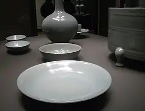 Los ejemplares son, en su mayoría, muy escasos, y consisten en copas, incensarios, o recipientes pequeños. Hay un pequeño número de «vasos de narciso» en forma oval, utilizado como vasos para esta flor. Muchas piezas tienen un fino esmalte sobre la superficie de las grietas, aunque hay algunas pruebas que muestran que la cerámica más admirada eran las que no tenían este tipo de imperfecciones, no intencionadas.[10] Estas no son simples formas de cerámica, puesto que se derivan de otros soportes realizados en objetos de metal y laca, entre los que se encuentran los platillos de bajo taza sin fondo, es tan común entre los objetos de cerámica como entre los de los materiales antes mencionados.[11] Poquísimos ejemplares tienen decoración con un motivo floreal ligeramente imprimido.[10]