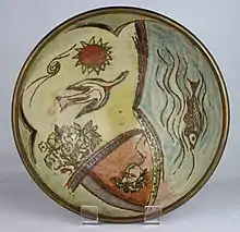 La cerámica de estudio es cerámica hecha por artistas o artesanos profesionales y aficionados que trabajan solos o en pequeños grupos, creando artículos únicos o tiradas cortas. Por lo general, todas las etapas de fabricación las llevan a cabo los propios artistas.[1] El término es la traducción literal del inglés studio pottery. La cerámica de estudio incluye artículos funcionales, como vajillas y utensilios de cocina, y artículos no funcionales, como esculturas, con jarrones y cuencos que ocupan un lugar intermedio, y que a menudo se utilizan sólo para su exposición. Los ceramistas de estudio pueden denominarse artistas de la cerámica, ceramistas o artistas que utilizan la arcilla como medio de expresión.