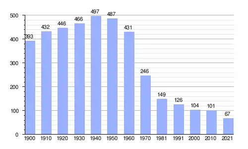 Su población ha ido disminuyendo desde los años 50 y 60, al igual que en toda la comarca, debido a la emigración por motivos laborales hacia otras partes de España y el extranjero. De esta forma la mayor parte de habitantes de entre 17 y 40 años se marchó a la zona norte de España, a la industria de Vizcaya y Guipúzcoa; también a Salamanca, Madrid, Asturias, Galicia, Cataluña o a Francia y a Suiza. La mayoría de estos emigrantes continúan regresando a la localidad donde poseen una segunda vivienda.
