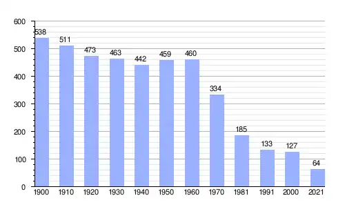Gráfica de evolución demográfica de Cerezal de Peñahorcada entre 1900 y 2021 |