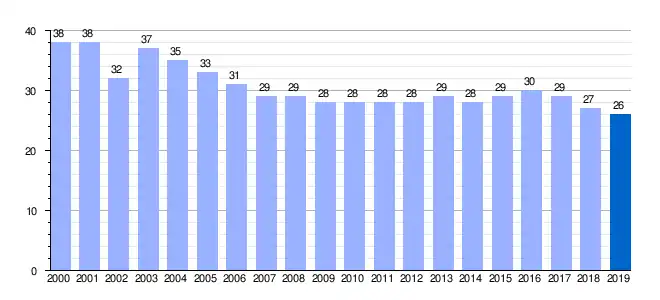 Gráfica de evolución demográfica de Cerezal de Puertas[3] entre 2000 y 2019 |