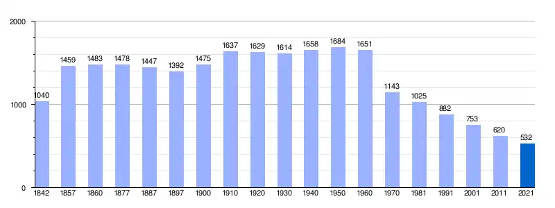 Población de derecho (1842-1991, excepto 1857 y 1860 que es población de hecho) o población residente (2001-2011) según los Censos de Población desde 1842. Población según el padrón municipal de 2021 del INE. |