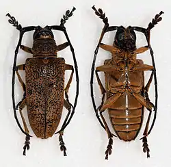 Se distribuye por Indonesia y Malasia.[1] Mide 26-33 milímetros de longitud.[1] El período de vuelo ocurre en los meses de marzo y abril.[1]