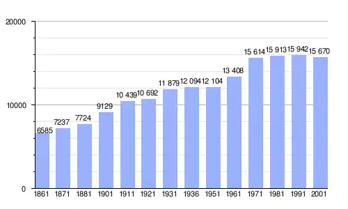 Gráfica de evolución demográfica de Certaldo entre 1861 y 2001 |