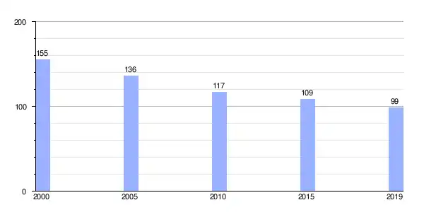 Gráfica de evolución demográfica de Cervantes entre 2000 y 2019 |