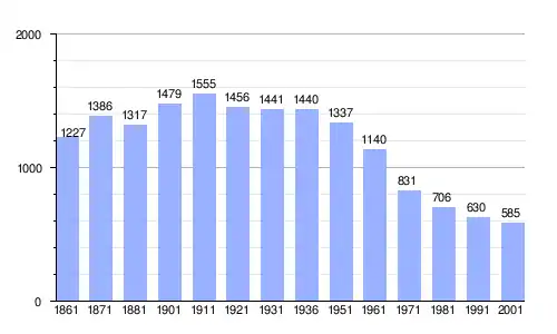 Gráfica de evolución demográfica de Cessapalombo entre 1861 y 2001 |