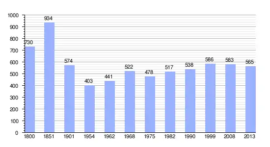 Gráfica de evolución demográfica de Chémery-Chéhéry entre 1800 y 2013 |