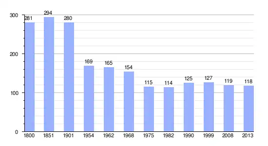 Los datos demográficos contemplados en este gráfico de la comuna de Chêne-Arnoult[4] se han cogido de 1800 a 1999 de la página francesa EHESS/Cassini, y los demás datos de la página del INSEE.[5]