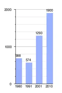 Cuenta con 1,900 habitantes (Indec, 2010), lo que representa un incremento del 47% frente a los 1,293 habitantes (Indec, 2001) del censo anterior.[5]La disminución de la población entre 1980 y 1991 puede deberse a la inestabilidad jurídica de las tierras que se describe en la sección Historia.