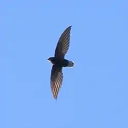 ![]() Ejemplar de vencejo rabón (Chaetura brachyura) sobrevolando Rio Cristalino, estado de Mato Grosso, Brasil. | ||