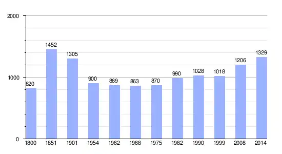 Los datos demográficos contemplados en este gráfico de la comuna de Chaillé-sous-les-Ormeaux[4] se han cogido de 1800 a 1999 de la página francesa EHESS/Cassini, y los demás datos de la página del INSEE.[5]