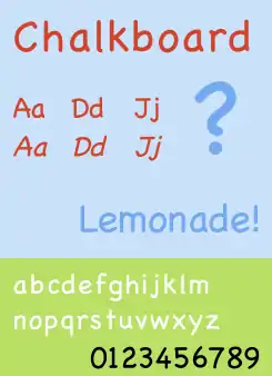 - Esta obra contiene una traducción derivada de «Chalkboard (typeface)» de Wikipedia en inglés, publicada por sus editores bajo la Licencia de documentación libre de GNU y la Licencia Creative Commons Atribución-CompartirIgual 3.0 Unported.