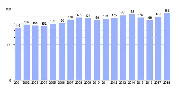 Gráfica de evolución demográfica de Chamín de Abaixo entre 2001 y 2018 |