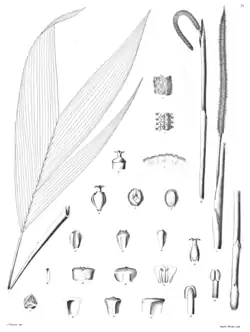 Son palmas con tallos solitarios, erectos, a veces decumbentes, de hasta 2 m de alto y 2–3 cm de diámetro, con entrenudos de 2–5 cm de largo. Las hojas 4 o 5, patentes, bífidas, hasta ca 1.2 m de largo, con la lámina de 50–70 cm de largo y 25–35 cm de ancho, cuneada basalmente, con nervios laterales 20 o más por lado; la vaina cortamente tubular, 15–25 cm de largo, oblicuamente abierta, el pecíolo de 15–25 cm de largo, pálido abaxialmente. Las inflorescencias interfoliares a infrafoliares cuando en fruto, espigadas, erectas, pedúnculo de 20–30 cm de largo, brácteas 4–5; inflorescencias estaminadas 4–10 por nudo, las medias alcanzando la antesis primero, porción fértil del raquis de 10 cm de largo, flores en espirales densas, de 1.5–2 mm de largo y 2.5–3 mm de ancho, verdes con un notable olor a anís, sépalos connados basalmente, pétalos valvados y a veces ligeramente imbricados en el ápice; las inflorescencias pistiladas solitarias, porción fértil del raquis de 15 cm de largo, verde y erecta en la antesis, anaranjada en fruto, flores 3 mm de largo y de ancho, en 10–12 hileras densas, verdosas a amarillentas, sépalos connados casi hasta el ápice, pétalos imbricados. Frutos obovoide-globosos, 10–15 mm de largo y 5–10 mm de ancho, verdes tornándose rojo-anaranjados y negros cuando maduros.