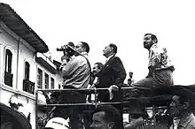 - Enrique Gutiérrez y Simón, productor ejecutivo de la película Chambú, rodando en 16 mm. en color, durante las fiestas de Blancos y Negros en Pasto. Detrás del él, Guillermo Edmundo Cháves, autor de la novela, y entre los dos se ve la cabeza de Alejandro Kerk, director de la película. Sentado, el actor Héctor Correa Leal.