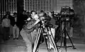 - Un momento de la filmación: Enrique Gutierrez y Simón con la cámara de 16 mm y en primer plano la de 35 mm. con un ayudante.