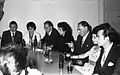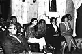 - Eduardo Botello, director de Fotografía; Enrique Gutiérrez y Simón, productor ejecutivo y Alejandro Kerk, director de la película Chambú, revisan la proyección del copión de lo filmado, con un proyector portátil manejado por un ayudante.