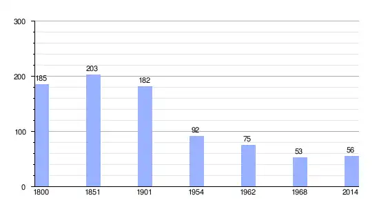 Los datos demográficos contemplados en este gráfico de la comuna de Champcourt[4] se han cogido de 1800 a 1968 de la página francesa EHESS/Cassini. Los demás datos se han cogido de la página del INSEE.[5]